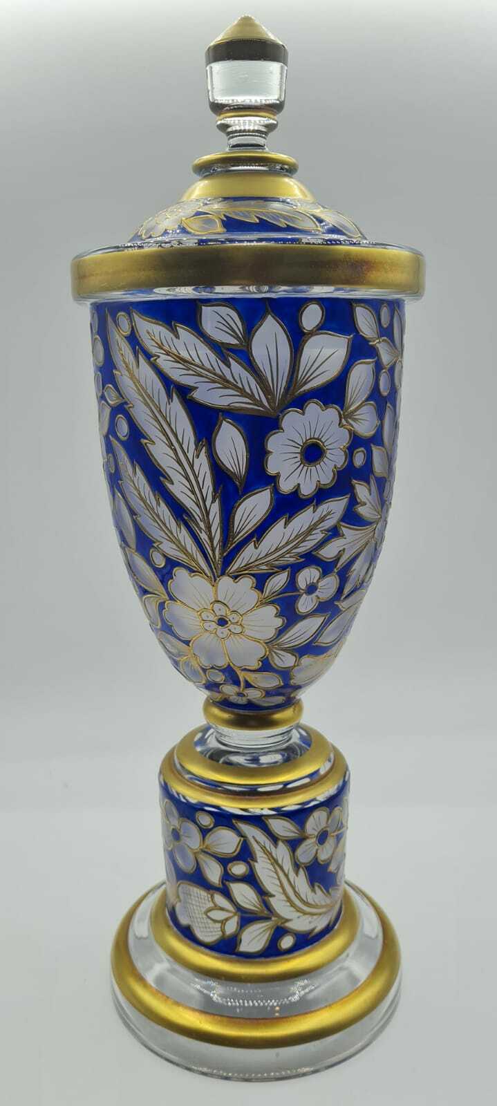 Antique Fritz Heckert Glass Vase with cover,Large Trumpet Vase,signed quantity