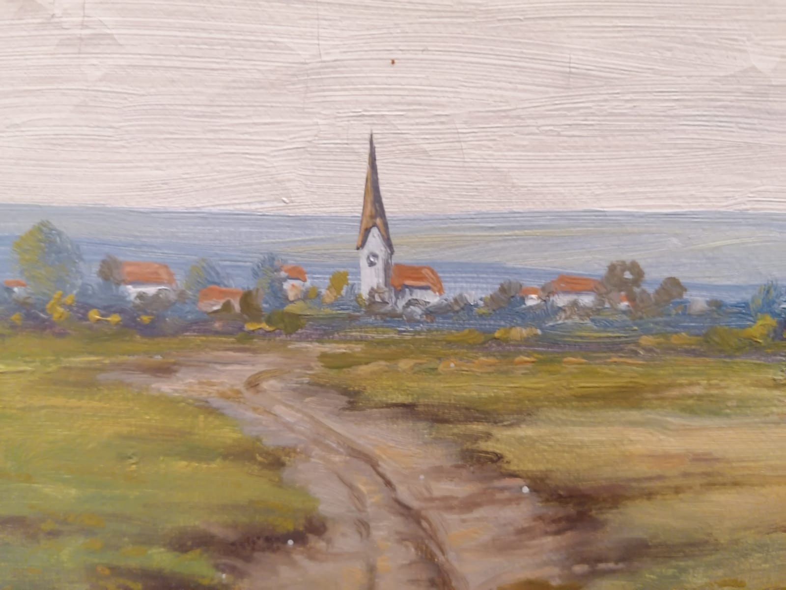 August Edler von Rüdt (1900 Munich 1966) “Upper Bavarian landscape with a view of a village and a hay harvest scene”, Signed, oil on canvas, dimensions approx. 31.5 x 46 cm, framed.