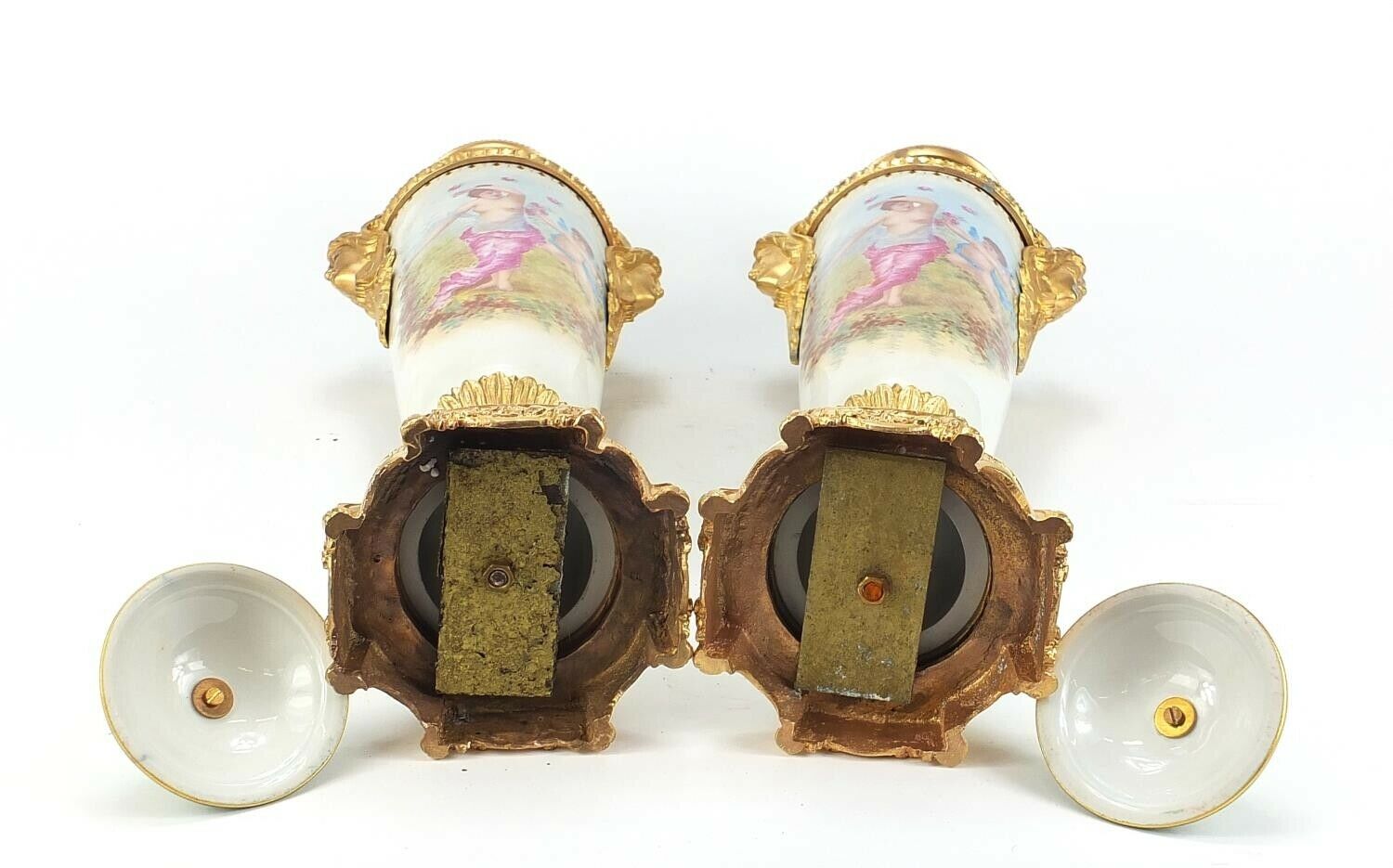 Large pair of French porcelain vases and covers with gilt bronze mounts