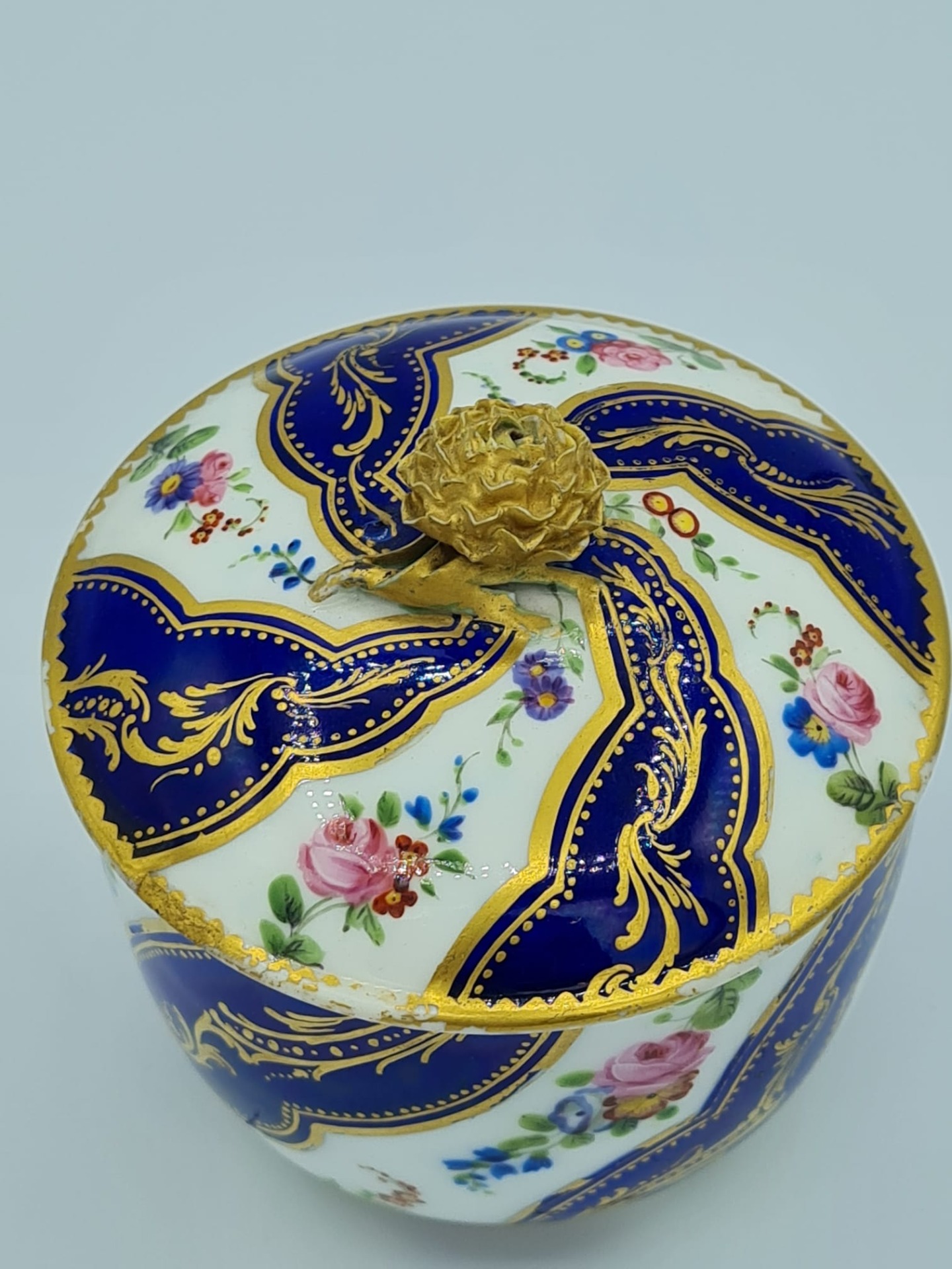 SUGAR BOWL AND BLEU LAPIS PORCELAIN LID BY VINCENNES (POT A SUCRE ‘BOURET’, 1ERE GRANDEUR)